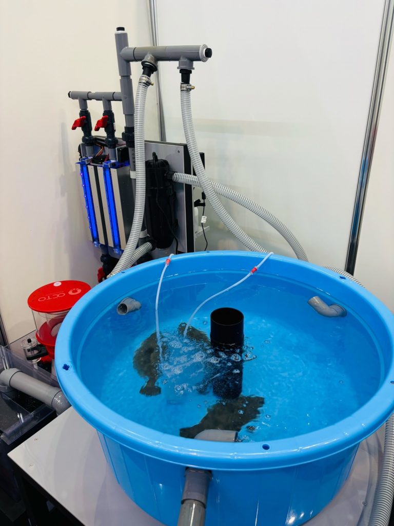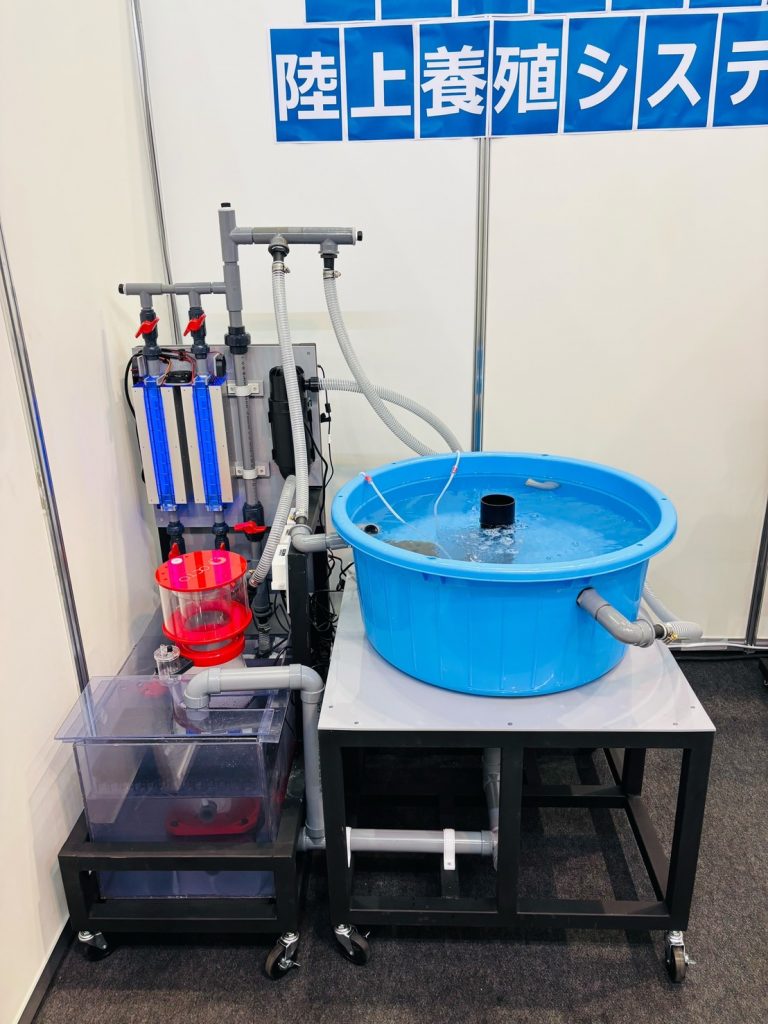今回の展示では、閉鎖循環方式のヒラメ養殖のシステムを展示予定です。